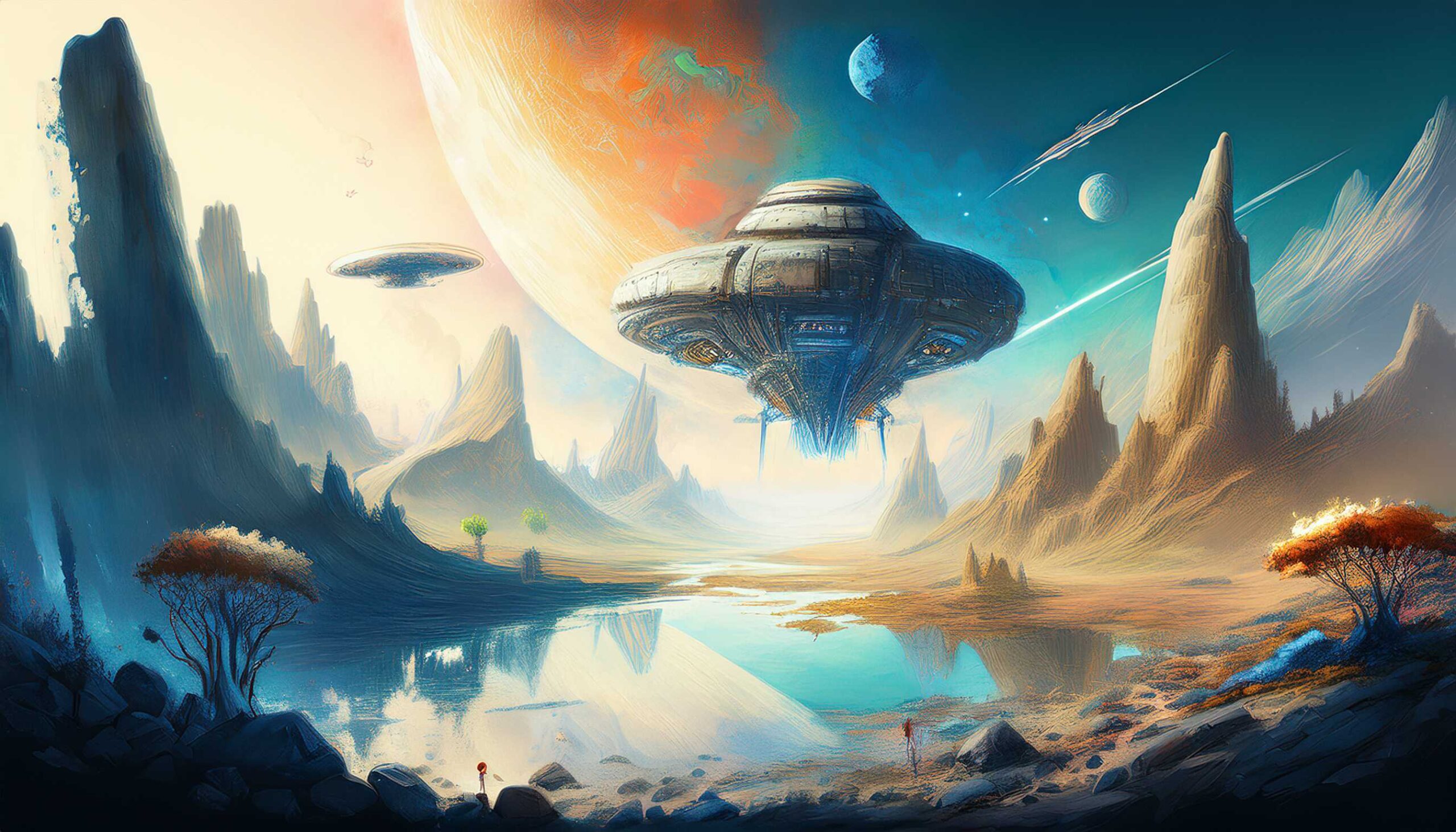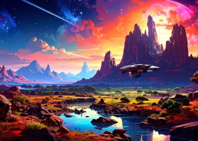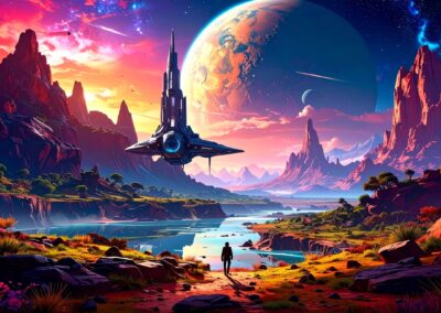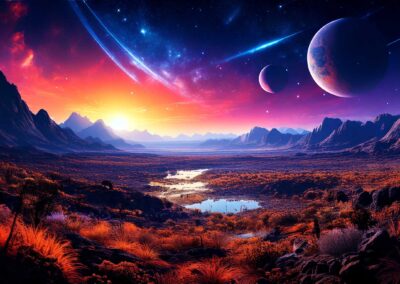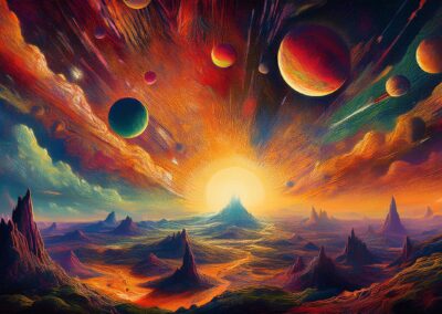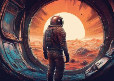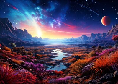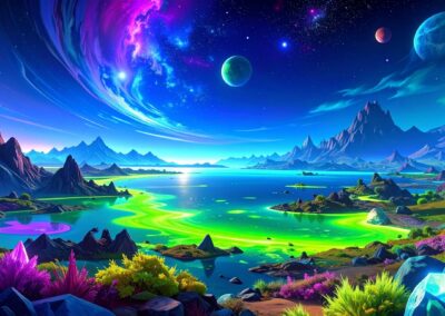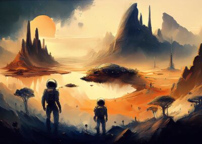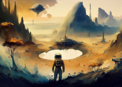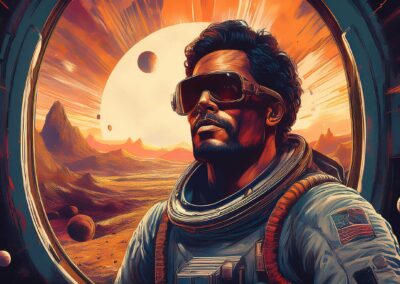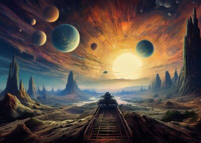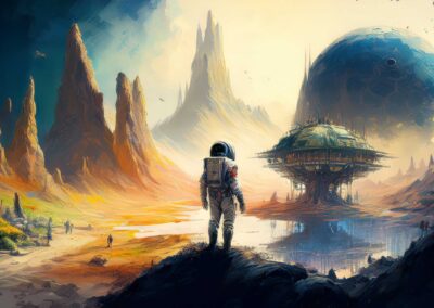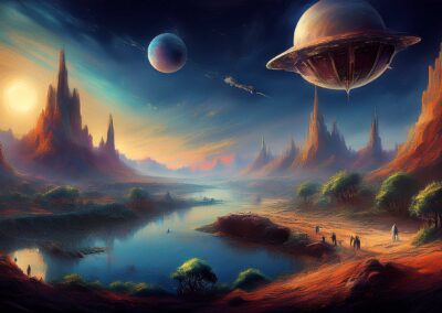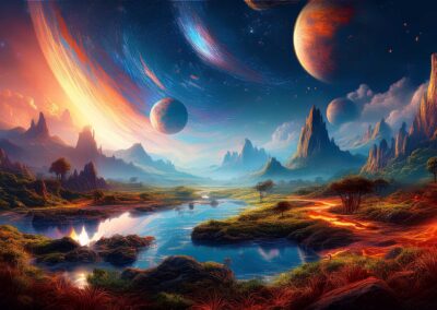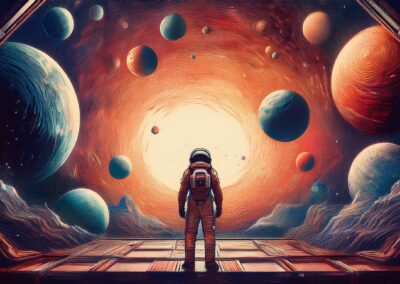 I love all things to do with space and the universe, and this is a place where I open the window on my exploration of AI specifically for creating space related images. Here, I’m not aiming for photographic perfection, rather, artful creativity and playful impossibilities, otherworldly images, the impossible and conceptual.